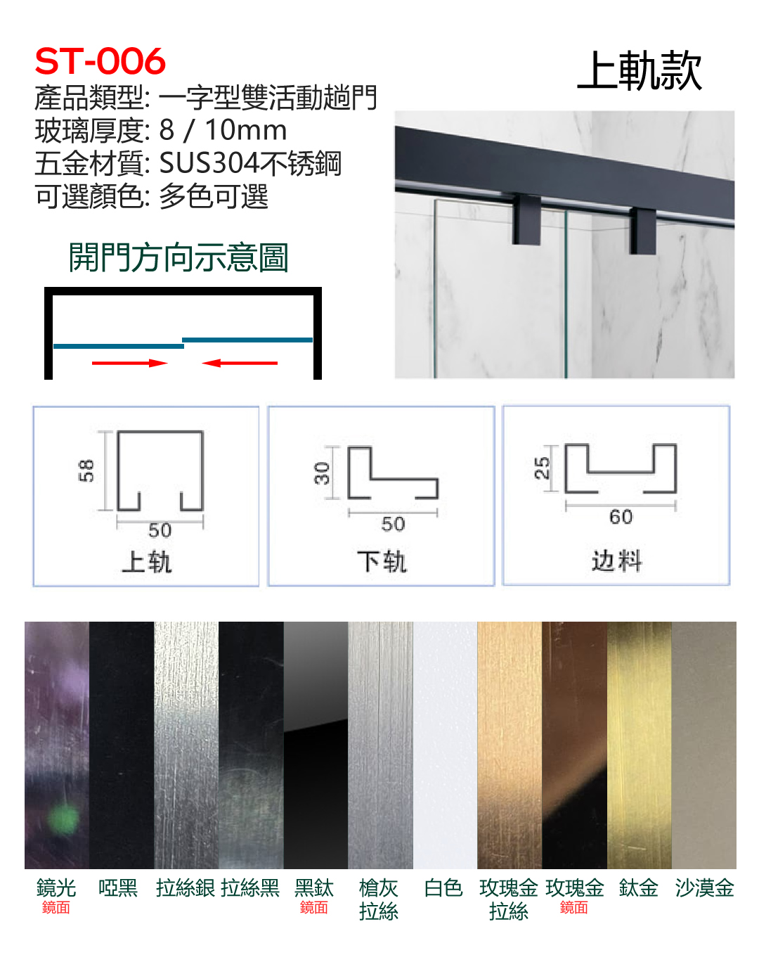一字形浴屏-雙趟門